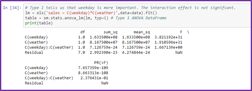 $$ ss(total) = ss(a) + ss(b) + ss(ab) + sse \,, $$ where \(ab\) represents the interaction between \(a\) and \(b\).